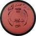 Käytetystä kiekosta löydät kuntoluokituksen lisäksi kolme tuotekuvaa (kansi, pohja ja siipi), painon (g) sekä tiedot tussimerkinnöistä.