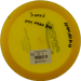 Käytetystä kiekosta löydät kuntoluokituksen lisäksi kolme tuotekuvaa (kansi, pohja ja siipi), painon (g) sekä tiedot tussimerkinnöistä.