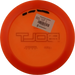 Käytetystä kiekosta löydät kuntoluokituksen lisäksi kolme tuotekuvaa (kansi, pohja ja siipi), painon (g) sekä tiedot tussimerkinnöistä.
