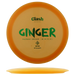 Ginger är en överstabil fairway driver från Clash Discs som erbjuder pålitlig stabilitet och en konsekvent fade i alla situationer. Den kan jämföras med en lätt inarbetad Innova Firebird.