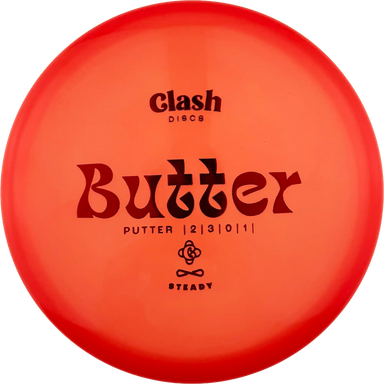 Butter är en beadless, rakflygande putter från Clash Discs med en liten fade. Dess profil är något djupare och mer stabil än Popcorn.