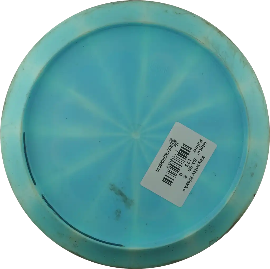Käytetystä kiekosta löydät kuntoluokituksen lisäksi kolme tuotekuvaa (kansi, pohja ja siipi), painon (g) sekä tiedot tussimerkinnöistä.